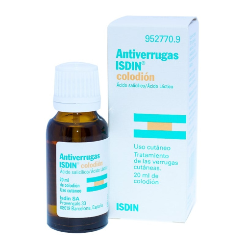 Antiverrugas Isdin es un colodión, líquido incoloro o ligeramente amarillento viscoso y con olor a éter.